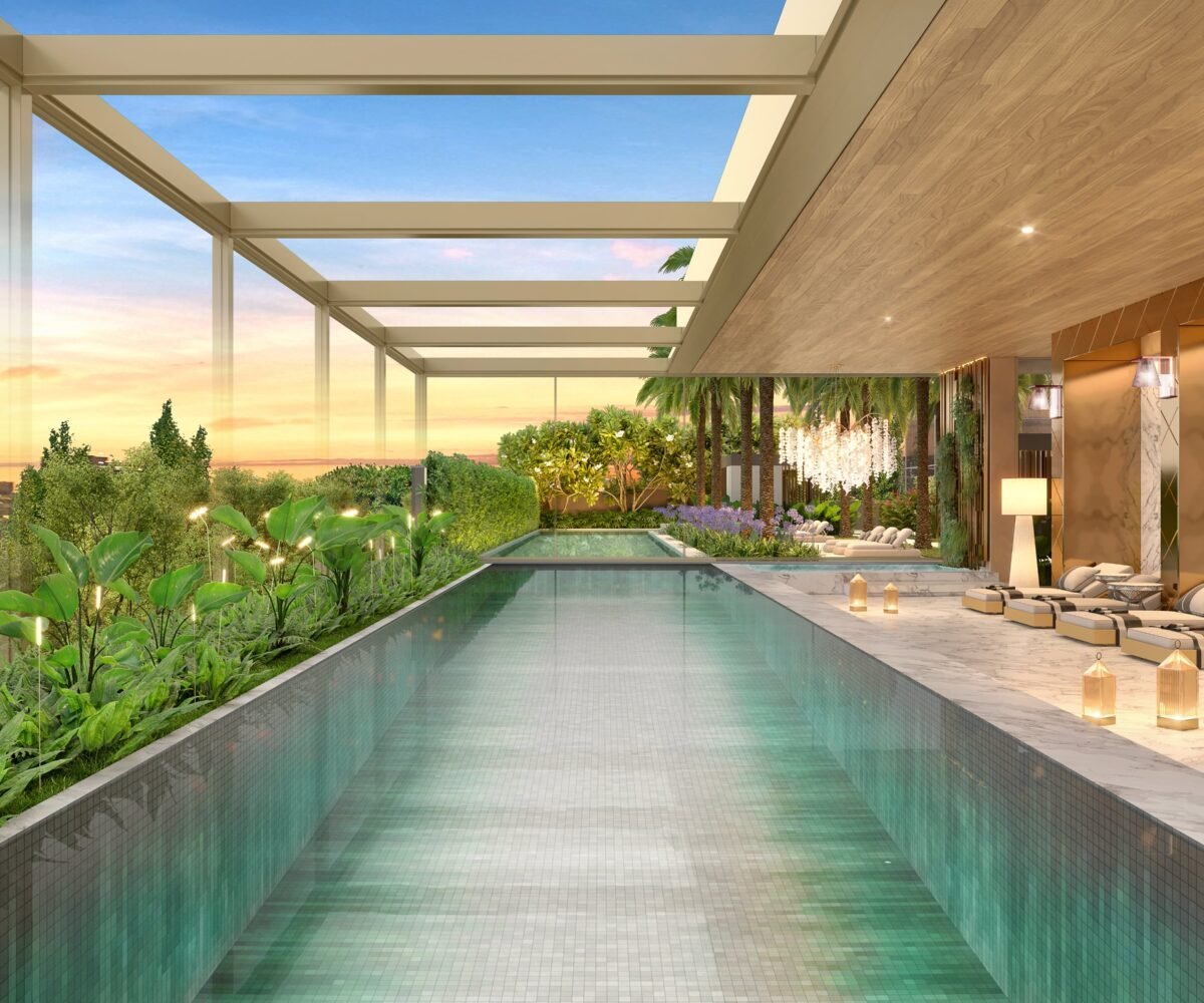 O projeto arquitetônico, assinado pela LE Arquitetos, se conecta ao paisagismo de Benedito Abbud para criar um respiro real dentro da cidade. Um equilíbrio raro entre o urbano e o essencial. Já os interiores, com curadoria do Yoo Studio, trazem uma linguagem contemporânea, sofisticada e com identidade global — um padrão que não se replica, se reconhece.